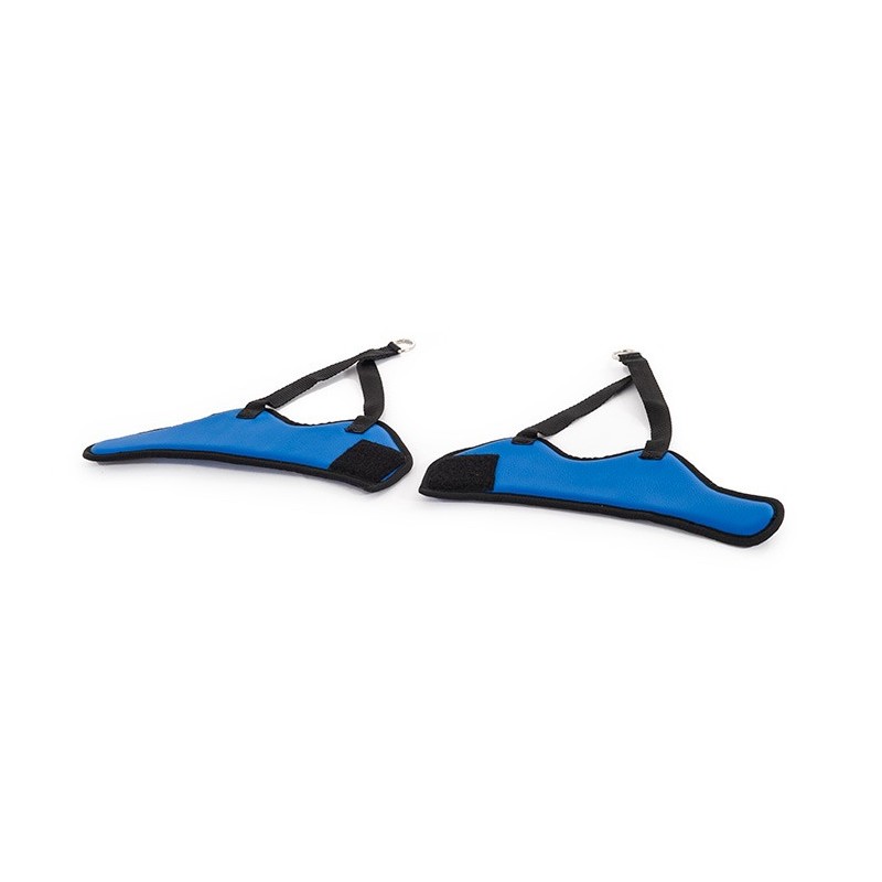 Coppia cavigliere per puleggio terapia imbottita in gomma spessore 8 mm e rivestita in similpelle colore blu bordato. Consente di poter effettuare terapie di trazione in completa sicurezza grazie alla robusta cinghia in polipropilene e agli anelli in ferro zincato che la sostengono
