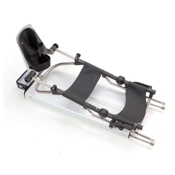 La regolazione avviene in maniera agevole senza impiego di attrezzi e per scorrimento su aste cromate. Una spalliera a corredo offre ulteriori possibilità di esercizi.
