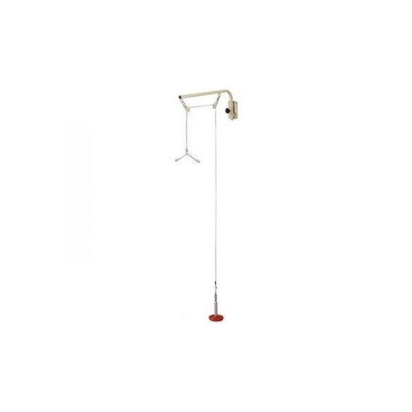 Attrezzatura con 2 stazioni a corda e 1 spalliera centrale in legno adatta alla terapia riabilitativa, anche per persone su carrozzina.