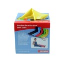 Fasce senza lattice in 7 colori relativi ai diversi livelli di resistenza e 3 lunghezze (1,5, 5,5 e 45 m).