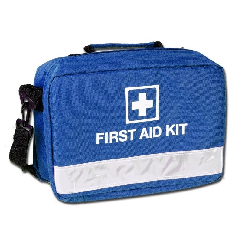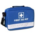 Borsa per primo soccorso dotata di 2 tasche interne trasparenti, una tasca esterna, un divisore interno con 2 cerniere a ogni lato, una maniglia di trasporto e una cintura.