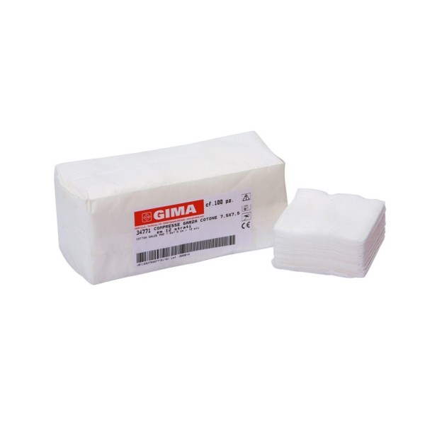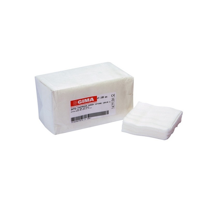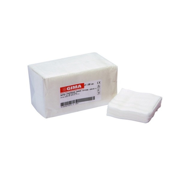 GIMA COMPRESSA GARZA IN COTONE 10X10CM - 16 STRATI NON STERILE (CONF. 100 PZ.)