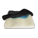 Il cuscino gel air 2D è fabbricato con una base in schiuma modellata viscoelastica (Visco Mouss) e un gel di poliuretano. Il gel fluido viscoelastico (blu) garantisce la massima riduzione della pressione sulle zone vulnerabili mentre il gel normale e la schiuma aumentano la superficie di contatto e ne attutiscono la pressione.