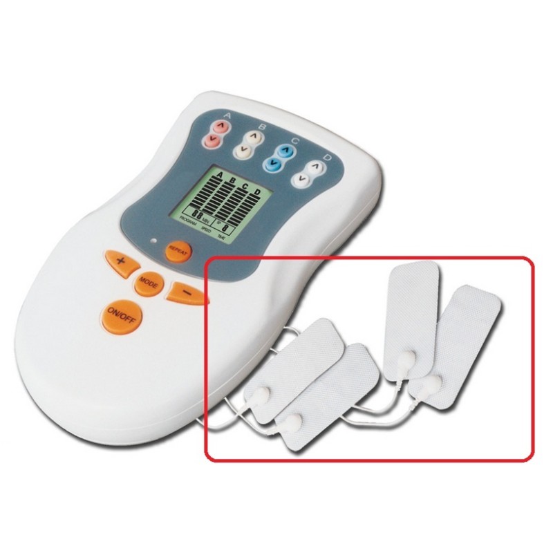 Stimolatore muscolare elettrico tascabile con 4 canali e 30 programmi.