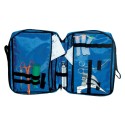 Borsa in nylon in 2 sezioni con due tasche zip, e 9 elastici di varie misure per reggere gli strumenti.