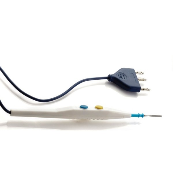 Manipolo autoclavabile dotato di due grandi pulsanti, un cavo in silicone di 3 m, un elettrodo a lama.