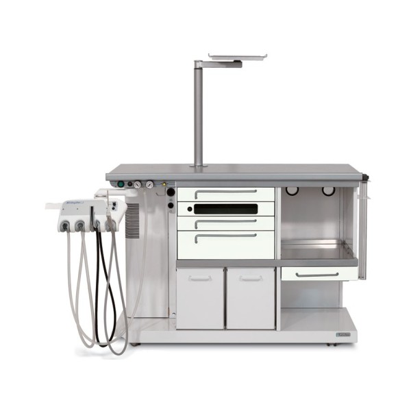 La superficie di lavoro rimane libera per potervi ospitare strumenti ed apparecchiature elettriche; essa può incorporare un lavandino e può essere utilizzata come una scrivania.
