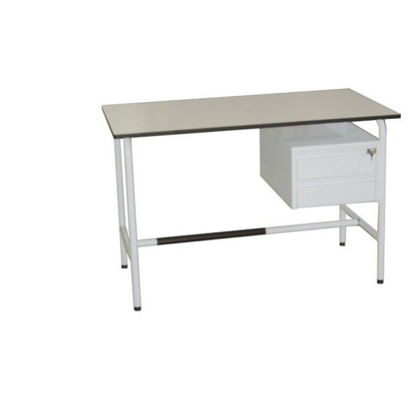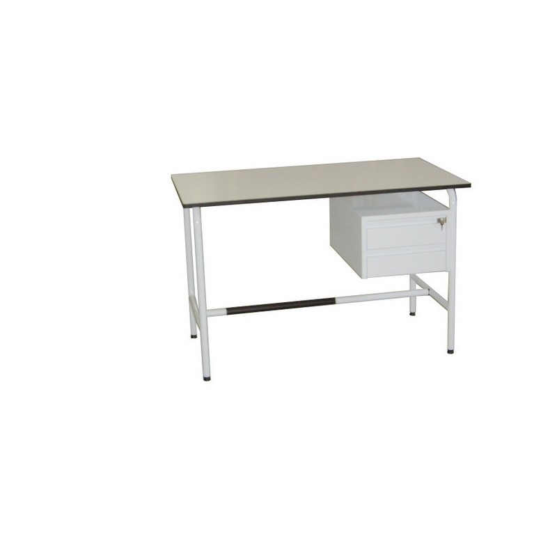 Scrivania con 2 cassetti laterali di cui il primo con chiave e struttura tubolare in metallo smaltato.