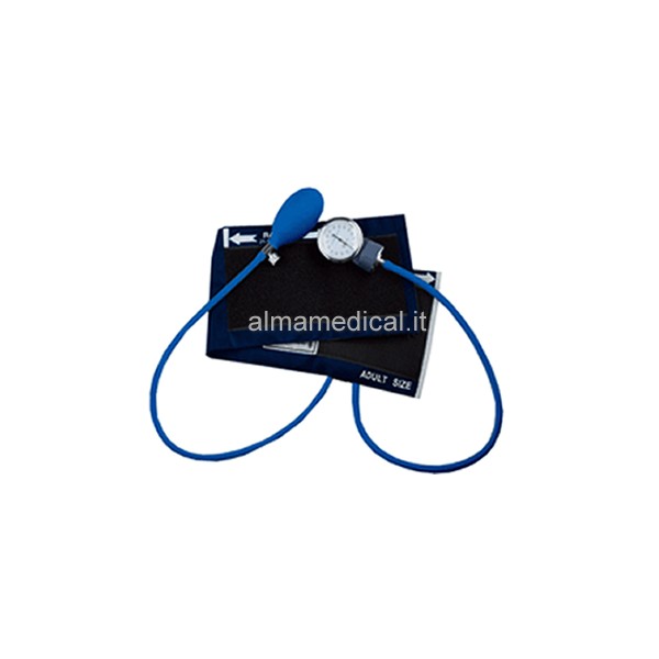Zero flottante (il puntatore non presenta un punto di stop ma oscilla liberamente), bracciale in nylon con velcro, pera in lattice con valvola cromata. Rubinetto aria cromato con regolazione rilascio aria tramite valvola a vite.
