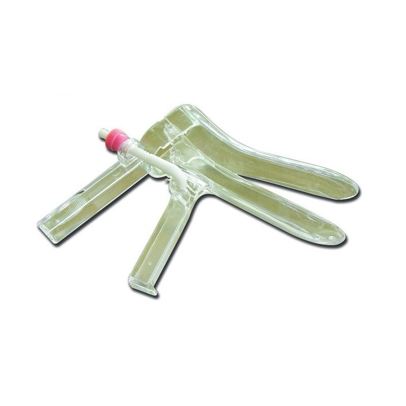 Speculum vaginali monouso con regolazione graduale a vite, prodotti in materiale plastico atossico trasparente, confezionati singolarmente in materiale trasparente.
