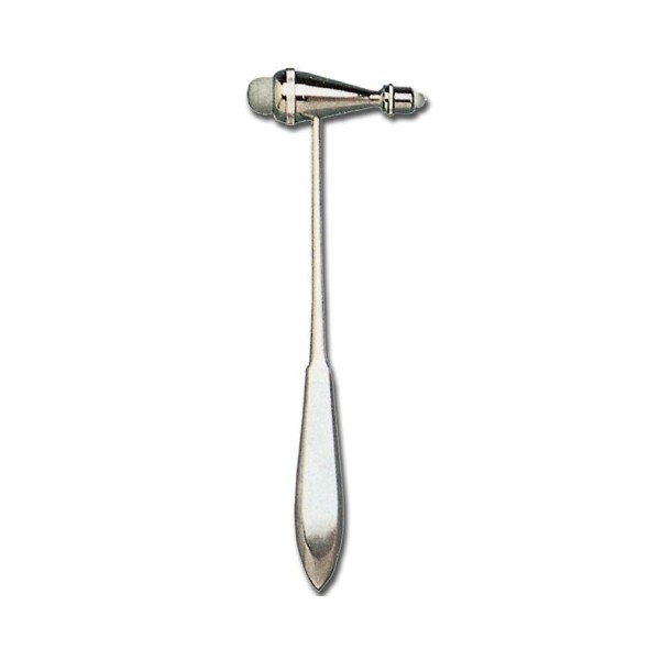 Il martelletto ha una testina con rivestimento in gomma nera ed è consegnato con uno spazzolino e un ago che permettono di determinare la sensibilità vitale.