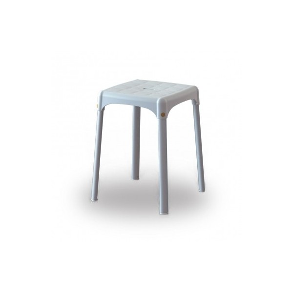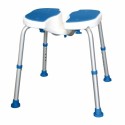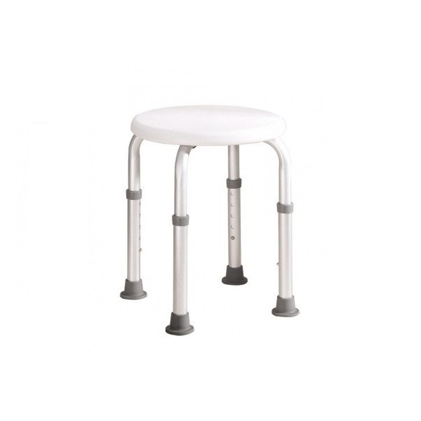 Sgabello per doccia con struttura in alluminio anodizzato regolabile in altezza e seduta in polietilene ergonomica con apertura centrale