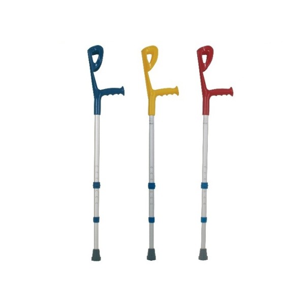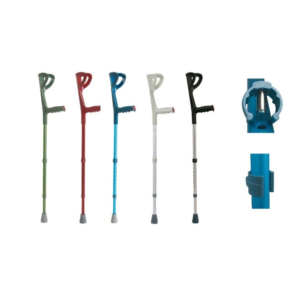 Stampelle regolabili in altezza con appoggio brachiale in polipropilene ed impugnatura ergonomica