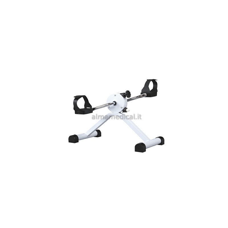 Minicicli per riabilitazione realizzati in acciaio verniciato. Dotati di 4 puntali in gomma antiscivolo, pedali con fasce fermapiedi, frizione regoalbile a cinghia. Utili per ristabilire la coordinazione e la massa muscolare. Imballo 2 pz. Colore: Bianco.
