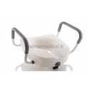 Rialzo per water morbido in PU con braccioli 13 cm. Bordo di insemento inferiore all'interno del wc 23,5x27,5 cm. Altezza bracciolo dalla seduta del rialzo 20 cm.