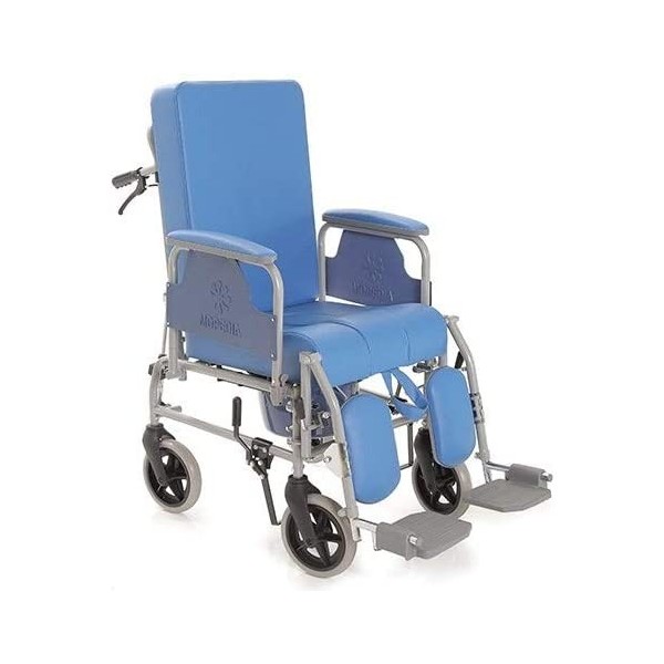 Braccioli ribaltabili, poggiapiedi ribaltabili lateralmente, estraibili e regolabili in lunghezza.