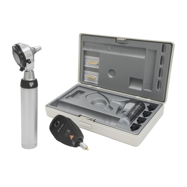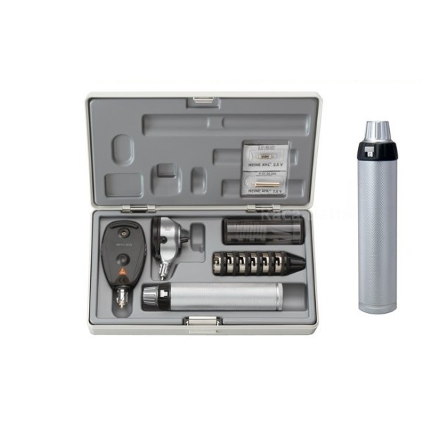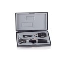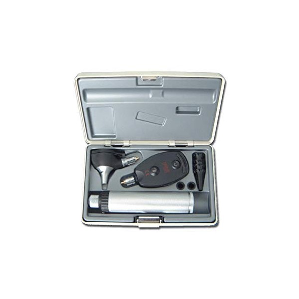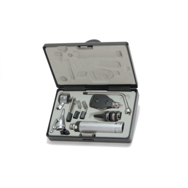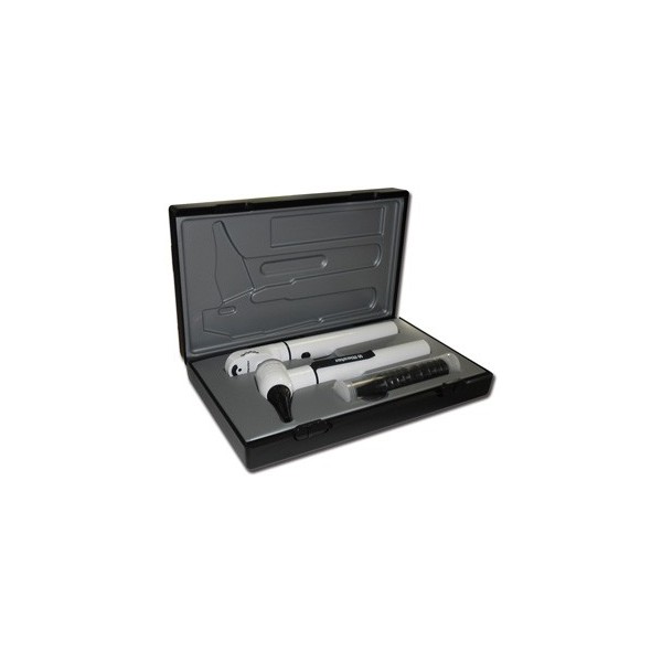Costruito in plastica robusta e leggera con inserti in metallo è dotato di due unità intercambiabili da otoscopio a oftalmoscopio.