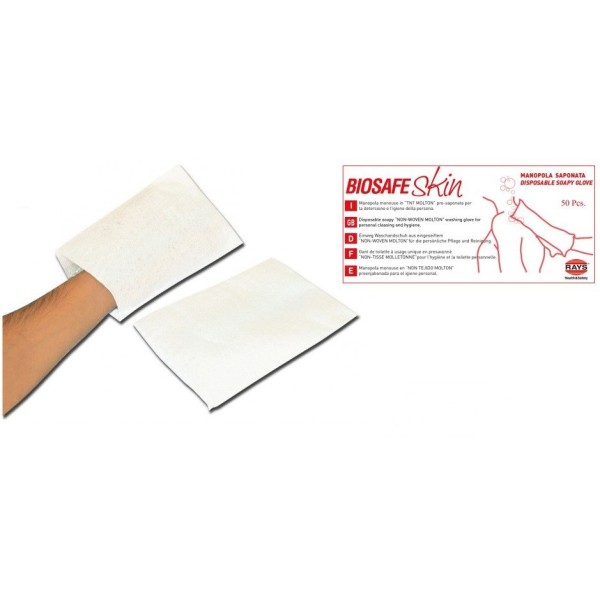 Per la pulizia del paziente con aggiunta di sapone. La superficie goffrata permette una pulizia profonda.