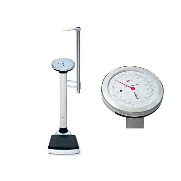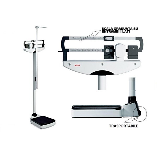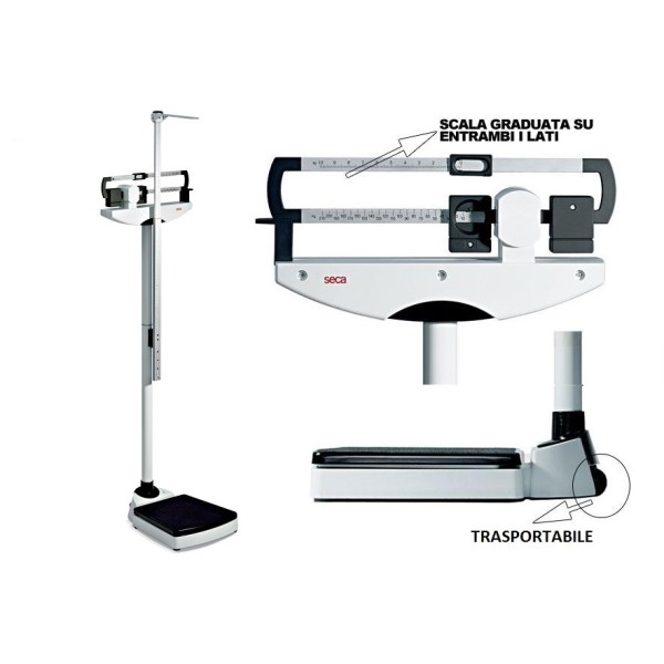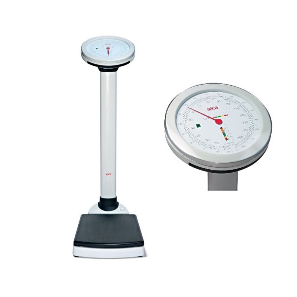 Bilancia meccanica a colonna con scala a livello degli occhi.