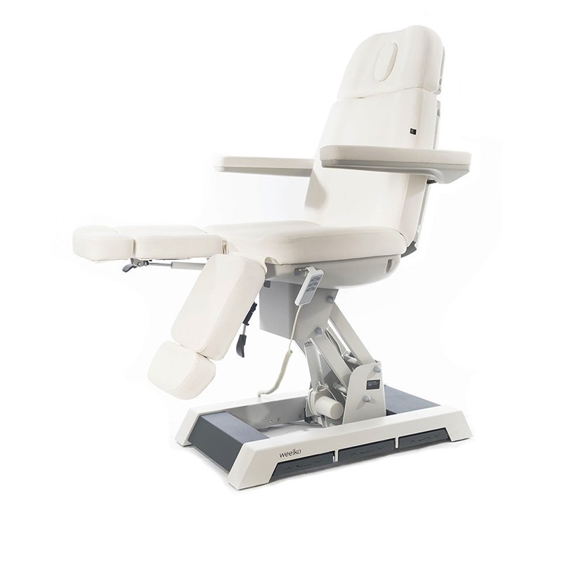 Poltrona podologica di alta gamma, dotata di 3 motori che controllano l'altezza, l'inclinazione dello schienale e del sedile.